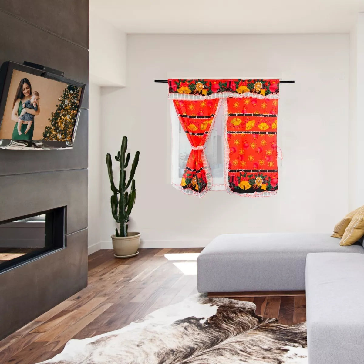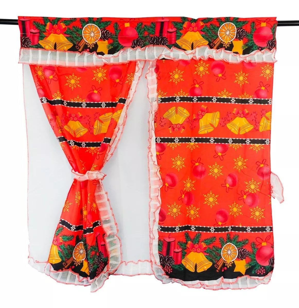 Cortina Cocina Navidad 120x120cm Visillo Set Festivo