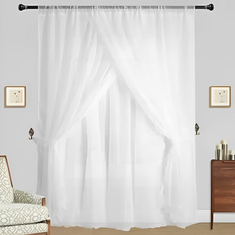Este set incluye tres paños, cada uno con una medida total combinada de 200 cm de ancho por 220 cm de alto, lo que permite una cobertura elegante y una hermosa caída. Confeccionada en un material tipo velo de alta calidad, esta cortina es ligera, transpirable y presenta un acabado sutilmente texturizado que evoca un estilo romántico y atemporal. Su diseño sencillo de colgado (asumo bolsillo para barra o presillas, ya que no se especifican argollas) la hace fácil de instalar, permitiéndote renovar tus espacios sin complicaciones. Ideal para salas de estar, dormitorios o incluso comedores, esta cortina es la elección perfecta para quienes buscan combinar funcionalidad con un toque de magia y elegancia sutil.