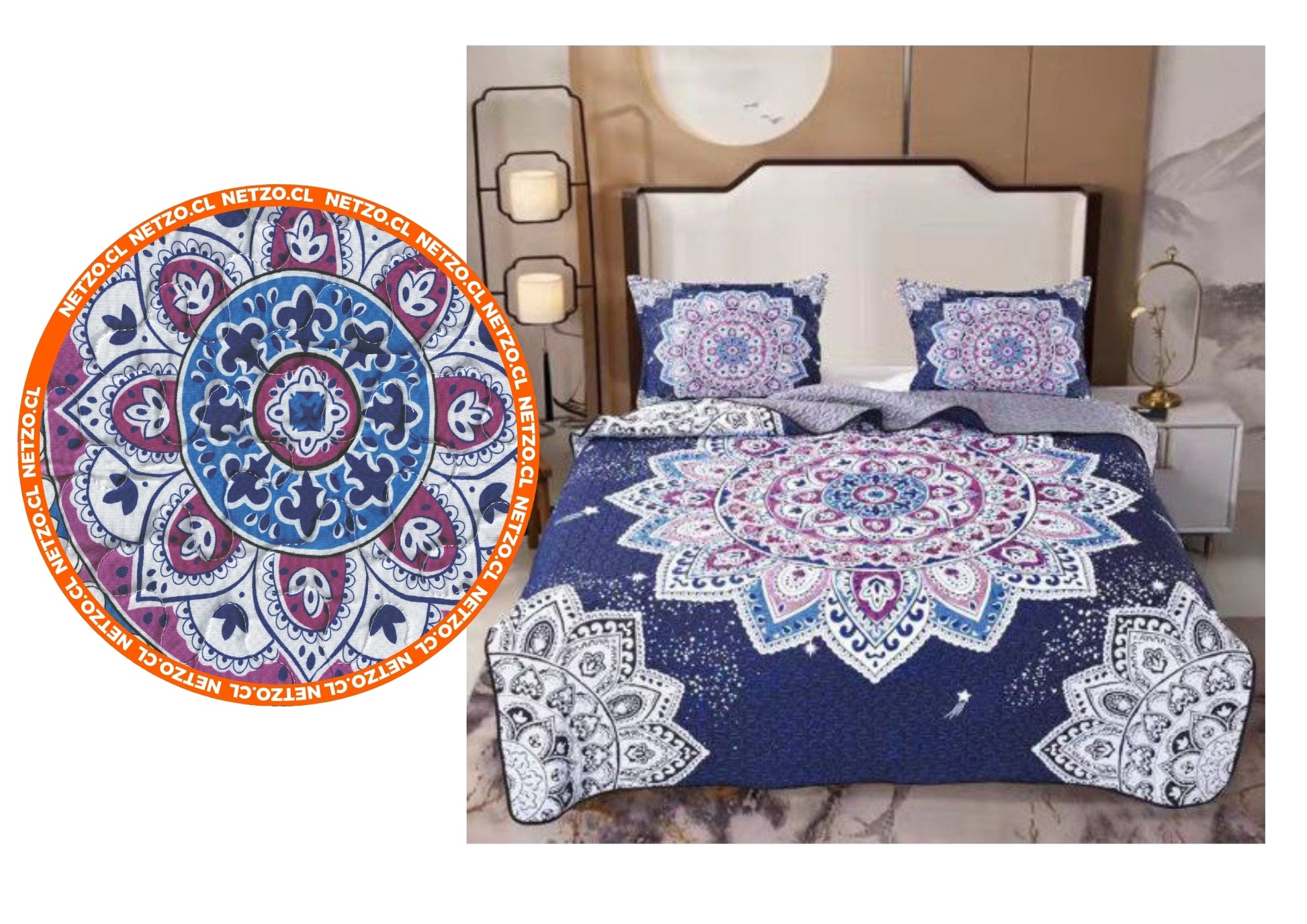 Cubrecama Cobertor Quilt 2 Plazas Mandala + 2 Fundas