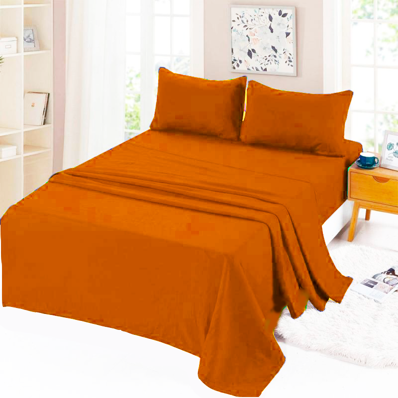 Juego Sábanas King Algodón Poliéster Suaves Naranja