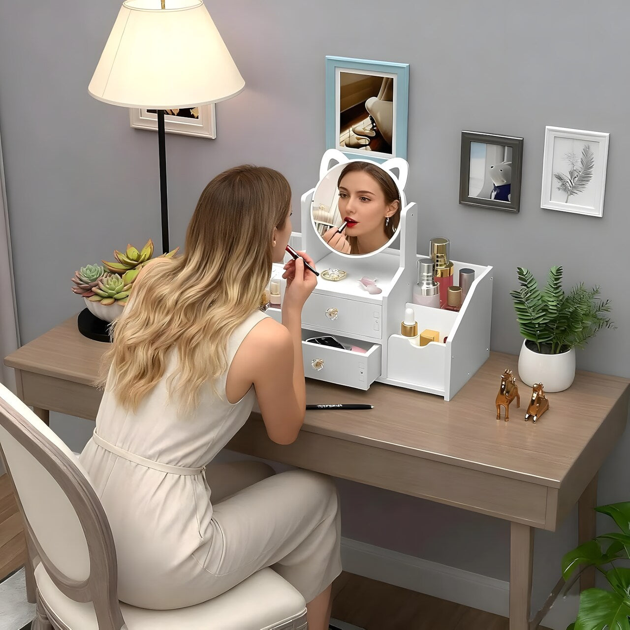 Organiza Tu Belleza con Nuestro Multifuncional Tocador Organizador de Cosméticos con Espejo y Cajón